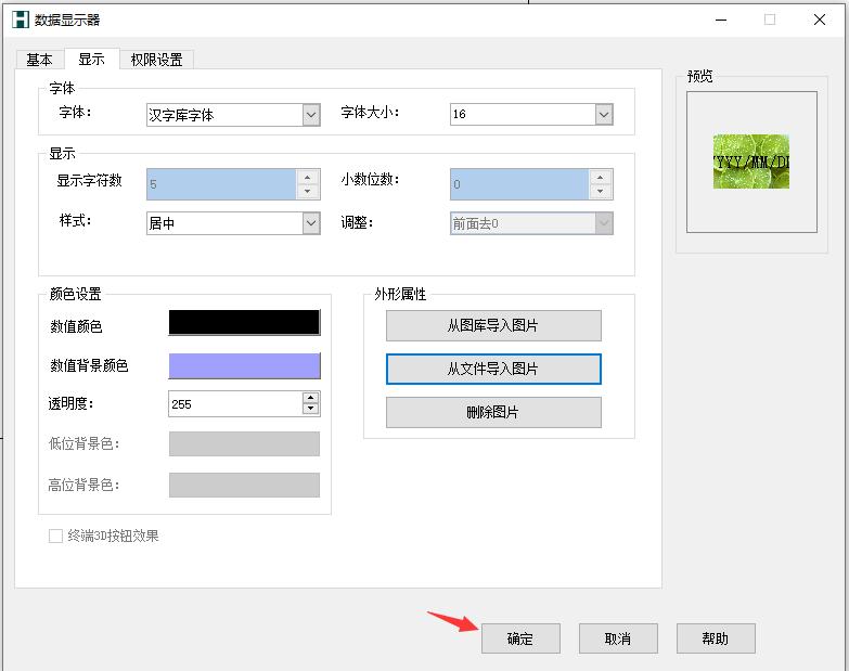 从文件中导入图片:从本地选择合适的图片作为数值显示器的外形,例如